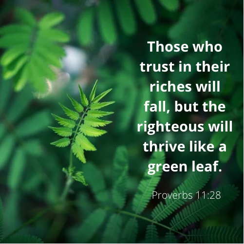 “Those who trust in their riches will fall, but the righteous will thrive like a green leaf.” (Proverbs 11:28) – It’s not trust that is the problem, it’s what we trust in. We all trust something or someone. Those who put their trust in worldly possessions will eventually be disappointed, for in time these will fail. However, those who put their trust in God will be like a green leaf. What do we see when we see a green leaf? We see life. The passage continues – “The fruit of the righteous is a tree of life” (Proverbs 11:30). Those who trust in God are truly alive. Those who trust in God truly thrive. Where will you put your trust today?