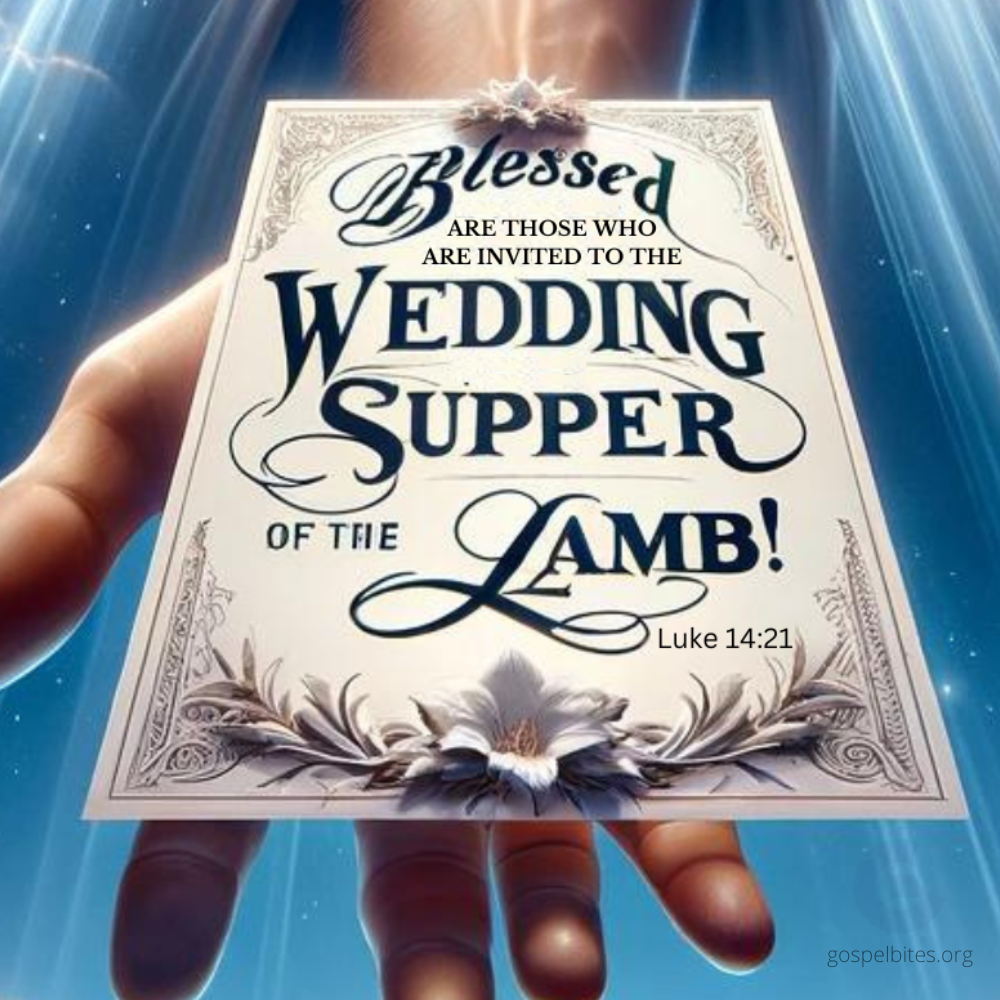 “It’s with joy that we would like to invite you to the wedding of…” There is something wonderful about receiving an invitation to a celebration, especially a wedding. Life is so full of bad news, and so an opportunity to celebrate is truly special. However, while some will go out of their way to attend, others will give reasons why they can’t make it. Jesus told a story about this. He tells a story about a king who is having a huge celebration and invites many guests. However, everyone gives excuses -“ I’ve just got a new house”, “I have just got a new job”, “I’m just so busy”. It seems crazy. Who wouldn’t want to be at a royal wedding? And so the king invites the “poor, the crippled, the blind and the lame” (Luke 14:21). He invites those who are considered unworthy – and they all accept. The good news is we have all been invited to the greatest marriage of all – to be part of the bride of Christ. The question is, are you among those who have excuses or those who are simply in awe of being invited? “Blessed are those who are invited to the wedding supper of the Lamb!” (Revelation 19:9).You are invited. Open Bible – https://bit.ly/Rev19v9, https://bit.ly/Luk14v21