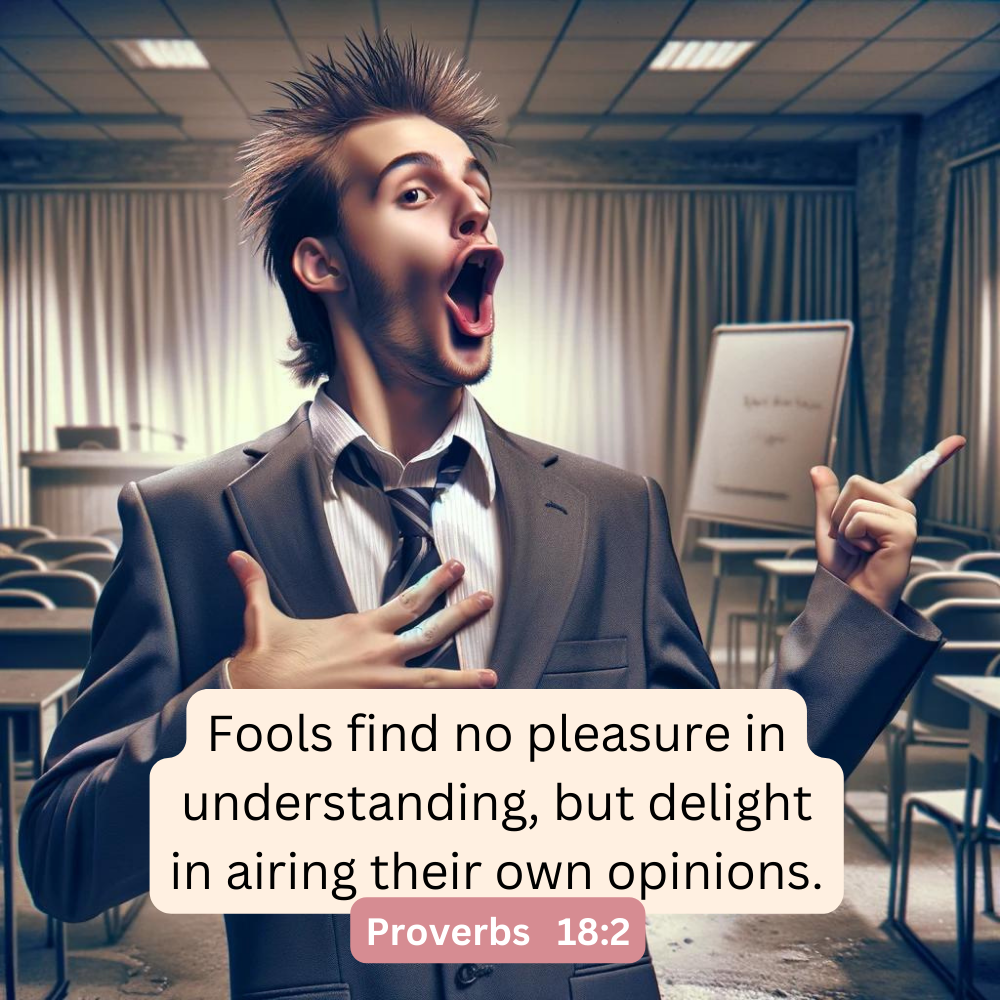 Ever heard the saying, “Empty vessels make the most noise”? This concept is rooted in the message of Proverbs 18:2, which reads, “Fools find no pleasure in understanding, but delight in airing their own opinions”. What is understanding, you may ask? The answer to that also lies in Proverbs 9:10, where we read, “The fear of the Lord is the beginning of wisdom, and knowledge of the Holy One is understanding.” We are reminded that true understanding is rooted in God, the Creator, and not just defined by us, His Creation. Therefore, we should not only delight in airing our own opinions, which are often shaped by impulse and emotion but rather find pleasure in seeking wisdom in the Word of God and getting to know Jesus – who is the way, the truth, and the life. As Jesus answered the Samaritan woman at the well, “God is spirit, and his worshipers must worship in the Spirit and in truth.” Let us be encouraged to seek understanding and the truth God has given us through His Word. Open Bible – https://bit.ly/Pro18v2, https://bit.ly/Pro9v10 (Jeremy G)